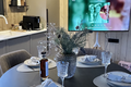 Сердце дома – панорамная кухня-гостиная, в которой расположен большой раздвижной кухонный стол с мягкими стульями. Продуманная стильная кухонная зона, включающая в себя всю необходимую посуду и технику (посудомоечная машина, кофемашина, чайник, варочная панель, духовой шкаф с встроенной микроволновой печью, стиральная машина с сушкой, большой холодильник).